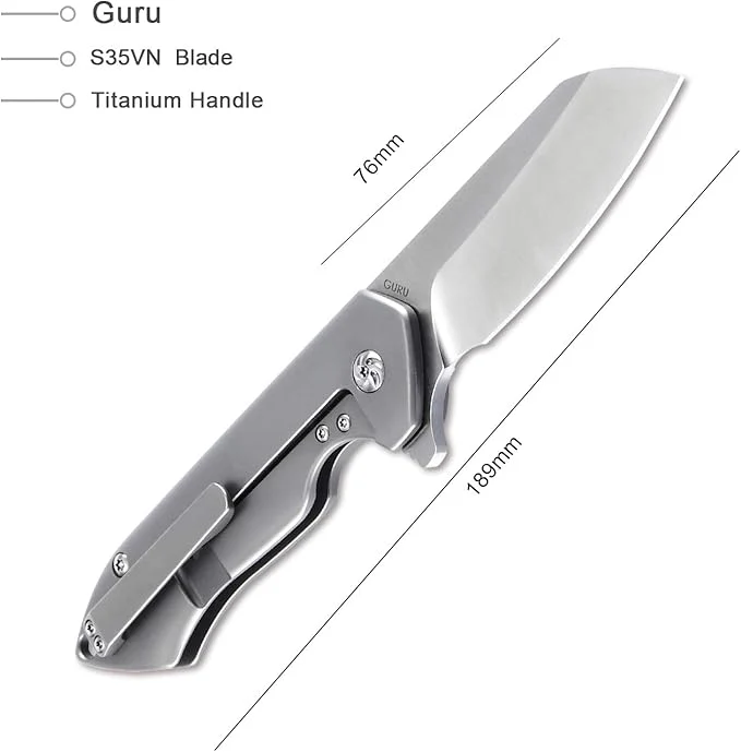 Kizer Guru EDC Folding Knife Titanium Handle S35VN Steel Ki3504K1 (2.97" Satin)